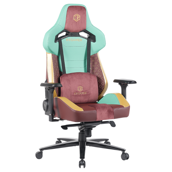 Il RXGAMER RX-2232 features a unique combination of fabrics: deep brown Anli leather fabric, custom lake green Anli leather fabric, custom gold fabric, and brown velvet fabric. These materials are chosen not only for their visual appeal but also for their comfort and durability. The textures are soft yet durable, providing long-lasting comfort and a premium look. The color scheme is designed to complement any modern workspace or gaming setup.